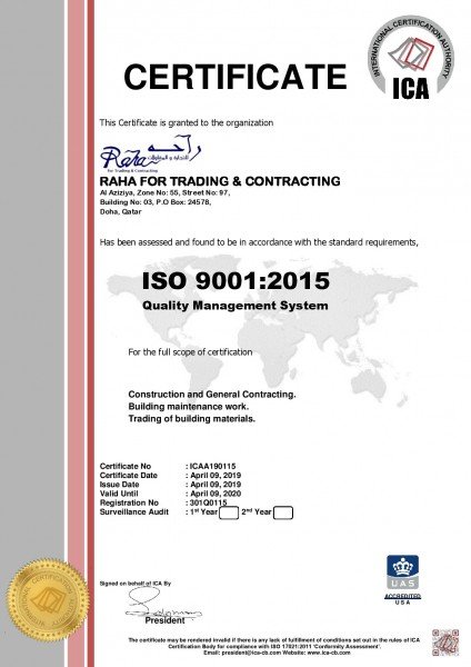 تقدم الأستاذ/ إبراهيم عبدالرحمن الرئيس و المديرالتنفيذي لشركة راحه للتجارة والمقاولات بالتهنئة لجميع الموظفين كما تقدم لهم بالشكر الجزيل لمساهمتهم الفعالة في حصول الشركة على شهادة الأيزو(ISO 9001: 2015 ) وذلك لنجاحهم في تطبيق نظام إدارة الأعمال عالي الجودة.